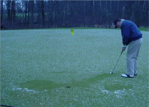Hail as a putting hazard? Does Titlest make a shovel for just such occasions?